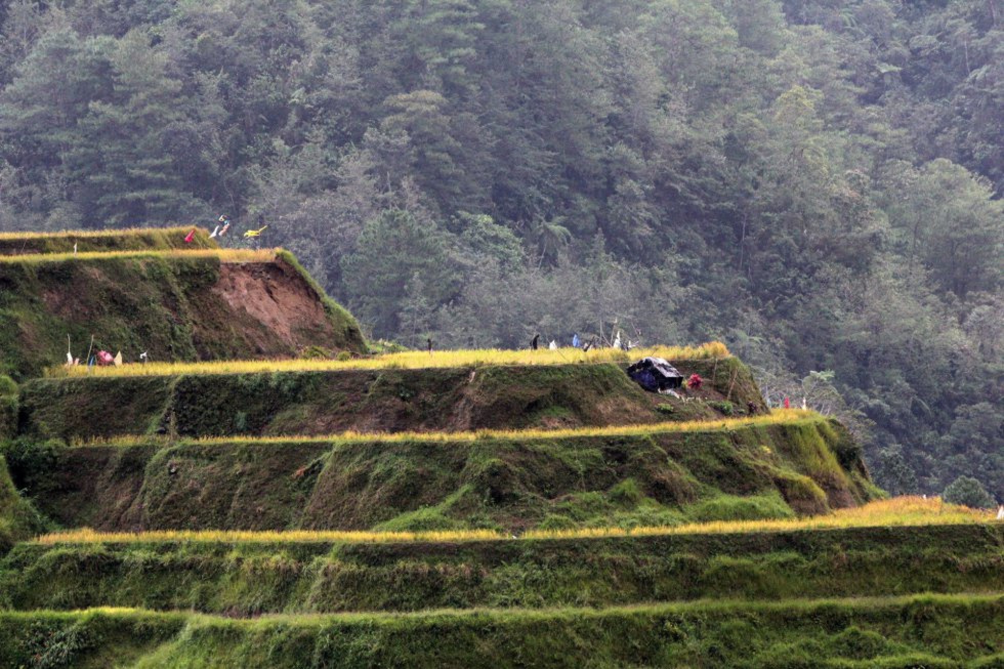 Vista de los arrozales en terrazas, Patrimonio Natural de la Humanidad de la UNESCO, dañados por el tifón Yutu en Banaue, en la provincia de Ifugao (Filipinas).